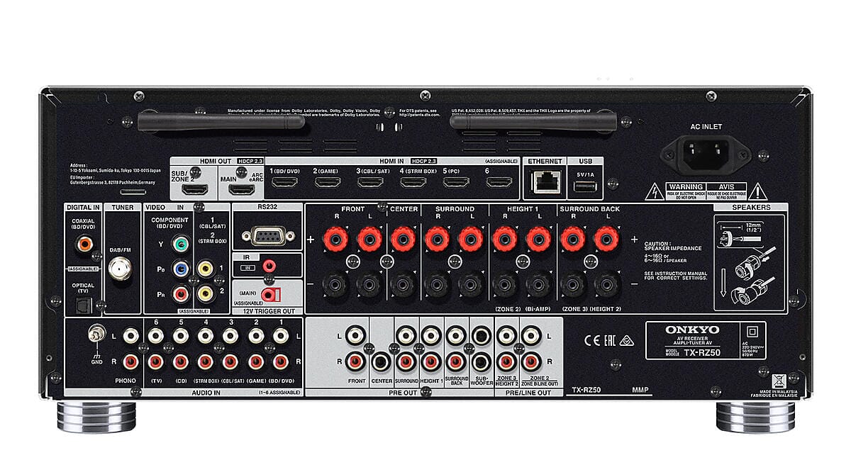 TX-RZ50 leverer 120 watt per kanal (8 Ω, 20 Hz–20 kHz, to kanaler drevet) – en realistisk måling som gjenspeiler faktisk ytelse. RZ-seriens High-Current-forsterkerdesign gir høy strømkapasitet, stort dynamikkområde og lav forvrengning. Resultatet er presis, engasjerende og kontrollert lyd – selv med krevende høyttalere.