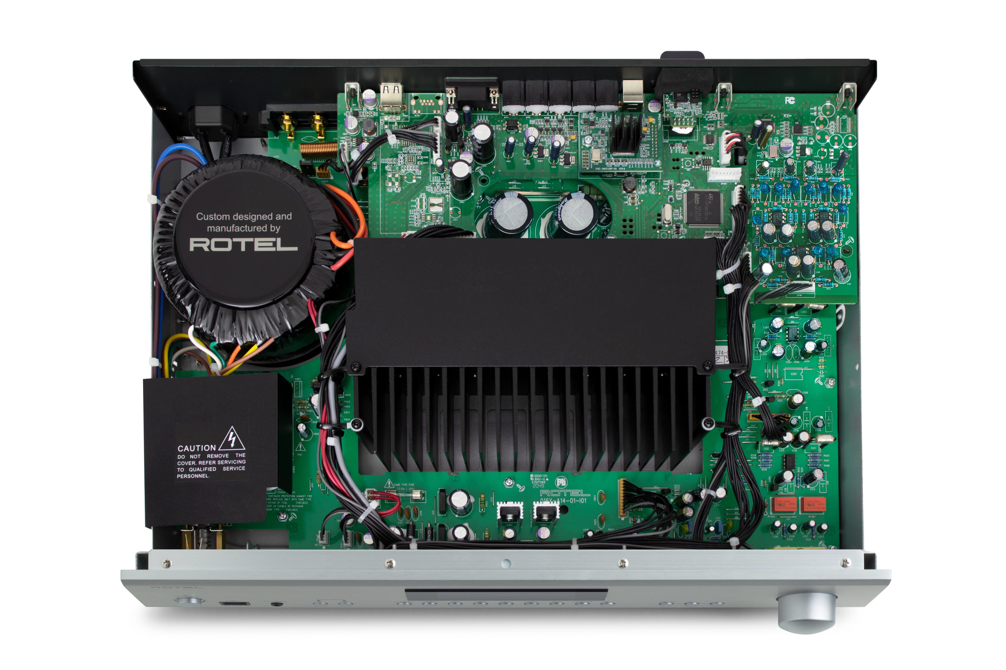 En 32-bit DAC fra Texas Instruments gjengir musikken med imponerende klarhet og detaljrikdom. Kretsdesignen følger Rotels “Balanced Design Concept”, hvor både fysisk og elektrisk isolasjon bidrar til lavere støy og mer presis signalbehandling.
